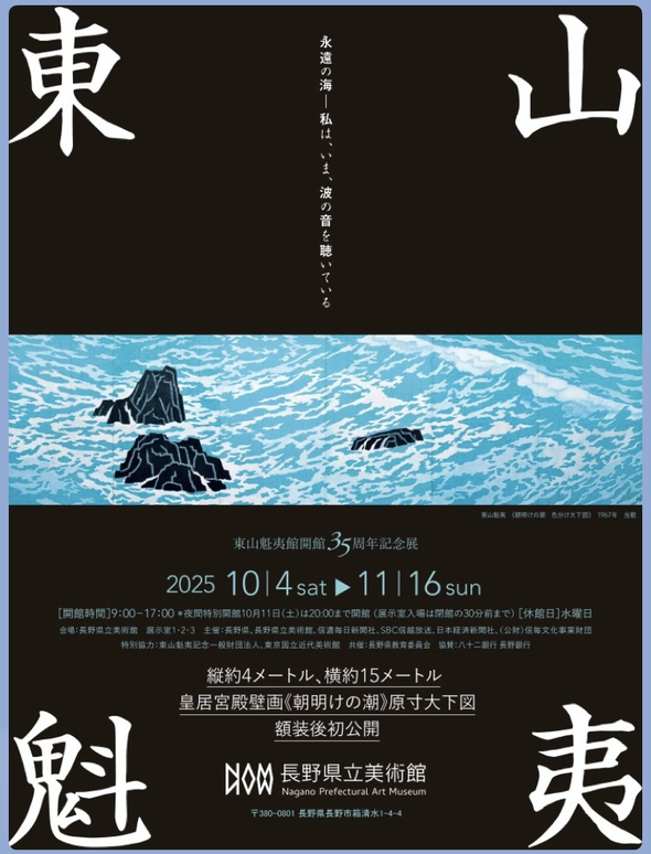 明日長野市で開幕します。 東山魁夷館開館35周年記念展です。 東山作品の中でも最大級の《朝明けの潮 色分け大下図》を額装後初公開します。 ほかにも東山魁夷の代表作を多数展示。 より深く作品を楽しめるイベントもあります。