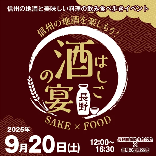 当日は長野駅前の二線路通りを一部歩行者天国にして、長野駅前の飲食店22店舗と信州の酒蔵22蔵がコラボするイベントです。
