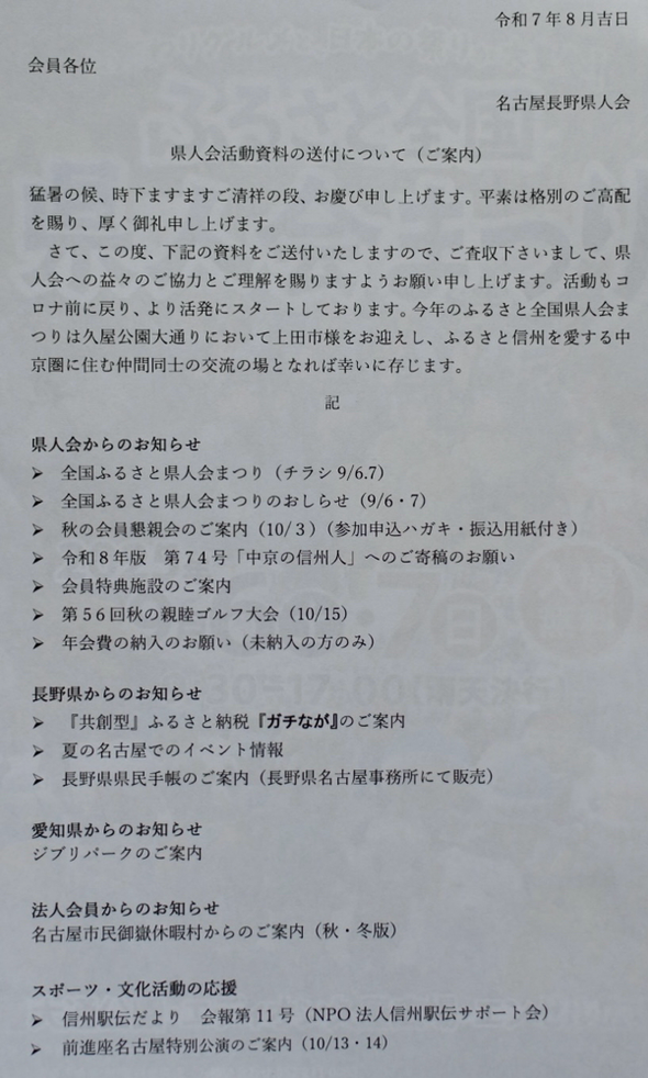 当県人会運営に際しまして、ご理解ご支援ご協力を賜りお礼申し上げます。歴史ある長野県人会の更なる充実と発展のため会員様・法人企業様等からのご支援ご賛同をお願い致します。